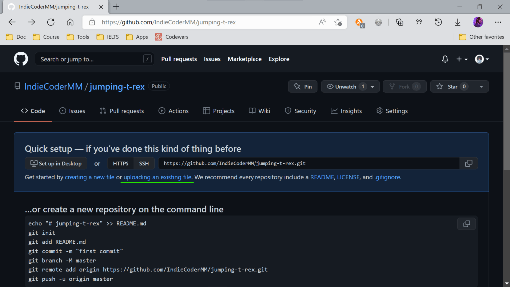 ဒီအဆင့်ထိ ရောက်ရင်တော့ ကျွန်တော်တို့ရဲ့ Jumping T-rex ဂိမ်းလေး ဖန်တီးလို့ ပြီးပါပြီ။ နောက်တစ်ဆင့်မှာတော့ ဒီဂိမ်းလေးကို သူငယ်ချင်းတွေနဲ့ Share လို့ ရအောင် Github ပေါ်ကို တင်မှာ ဖြစ်ပါတယ်။